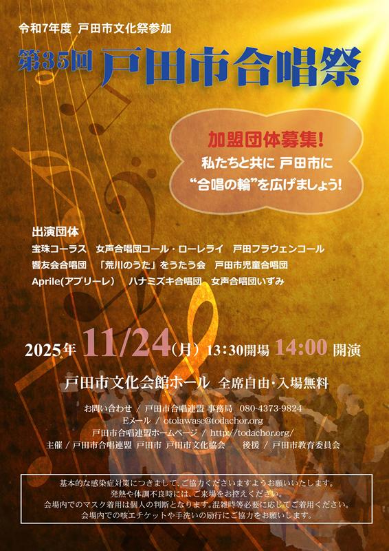 11/24(月) 戸田市合唱連盟 第35回戸田市合唱祭 いよいよ開催です!